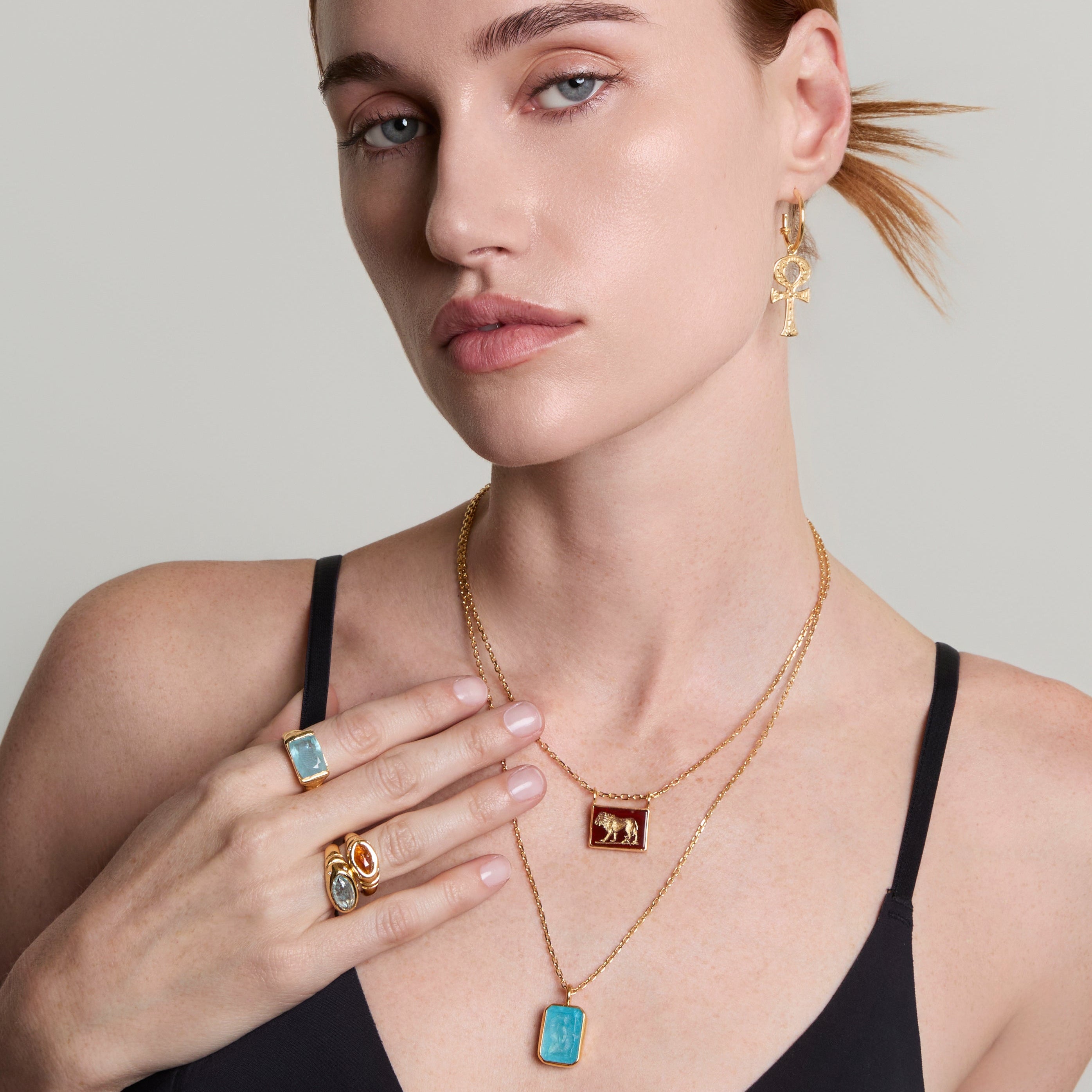 Urania Göz Yüzüğü el oymasıdır 925 ayar gümüş akuamarin üzerine 22 ayar altın kaplama. Adını açık gökyüzü tanrıçası ve astronomi ilham perisi Urania'dan alan bu yüzük, göklerin dingin güzelliğini ve sınırsız bilgeliğini temsil eder. Urania'nın gökyüzünün berraklığını ve gizemlerini yönettiğine, ilham, koruma ve göksel rehberliği simgelediğine inanılır. Akuamarin taşı, berrak bir gökyüzünün sakin mavisini yansıtırken, etrafındaki altın ışıltısı Urania'nın ilahi ışığını temsil eder. Urania Göz Yüzüğü'nü taktığınızda, açık gökyüzünün dinginliğini ve evrenin sonsuz olasılıklarını her zaman yanınızda taşıyacaksınız.